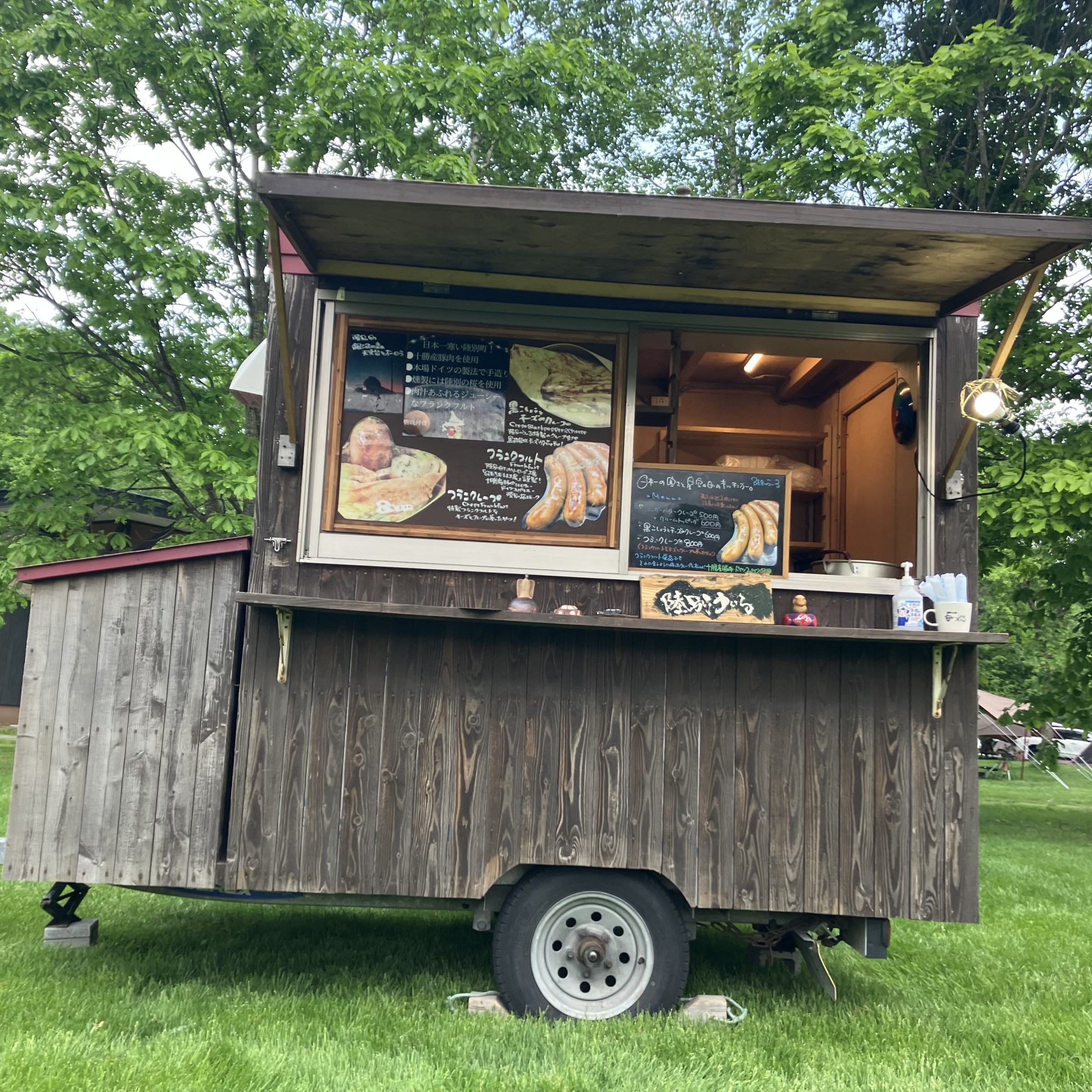 フランクフルトに合うようにつくった特製のクレープ生地とチーズのフランクレープetc.